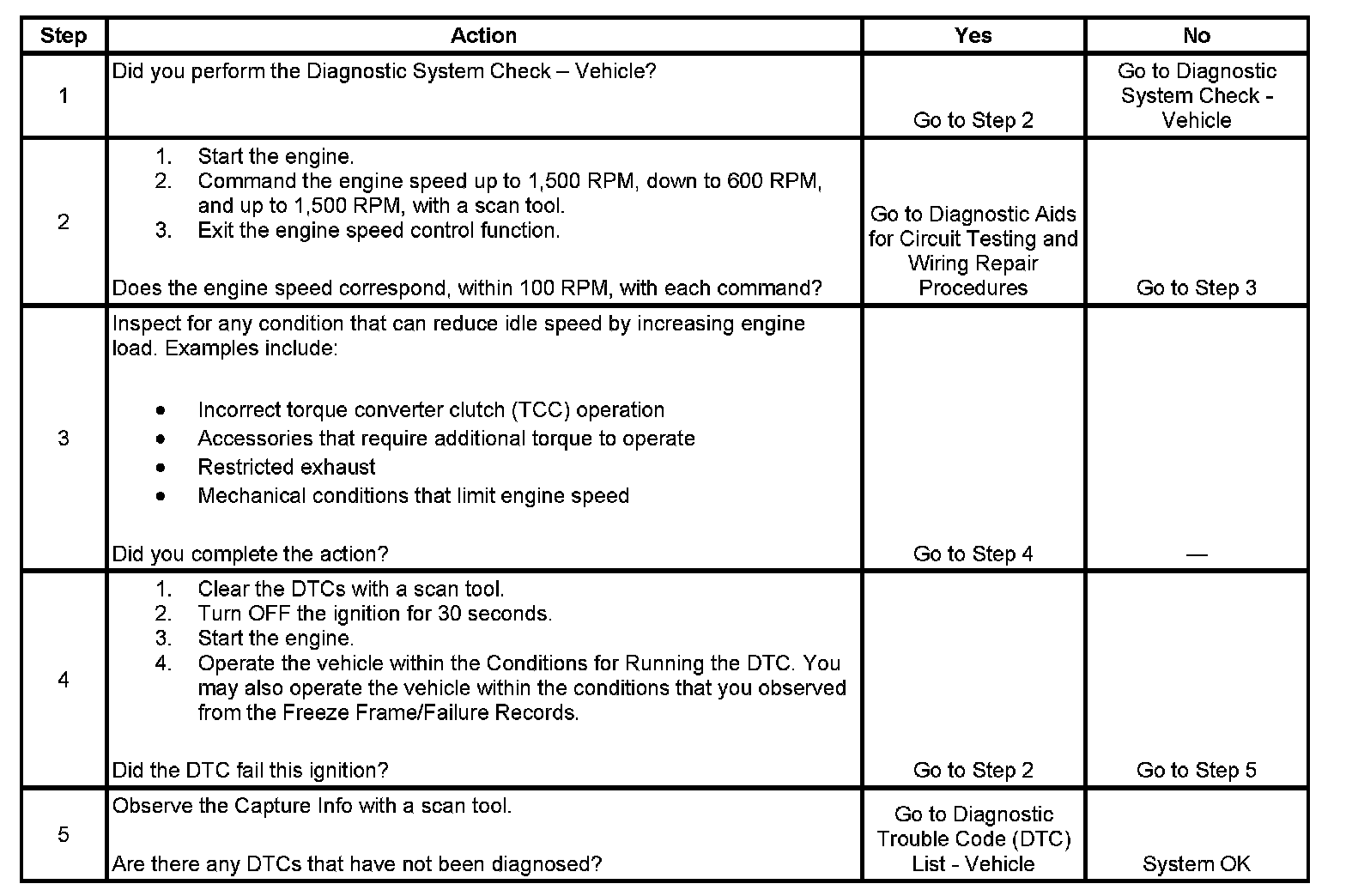 - The actual idle speed is approximately 100 RPM lower than the desired idle speed.