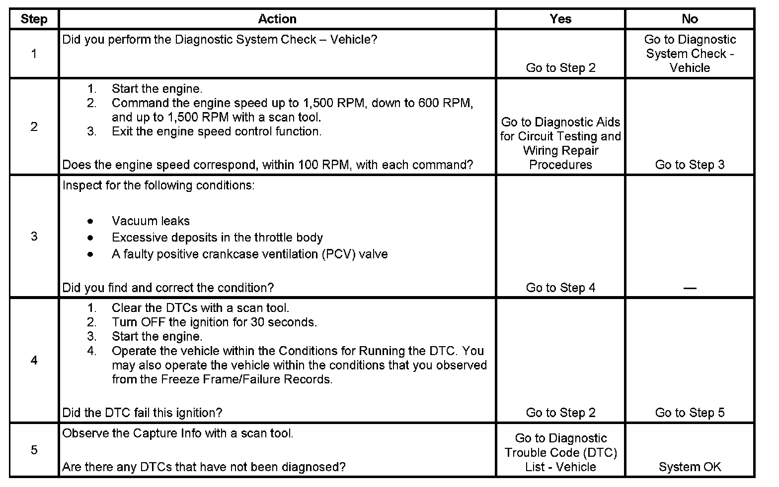 - The actual idle speed is approximately 200 RPM greater than the desired idle speed.