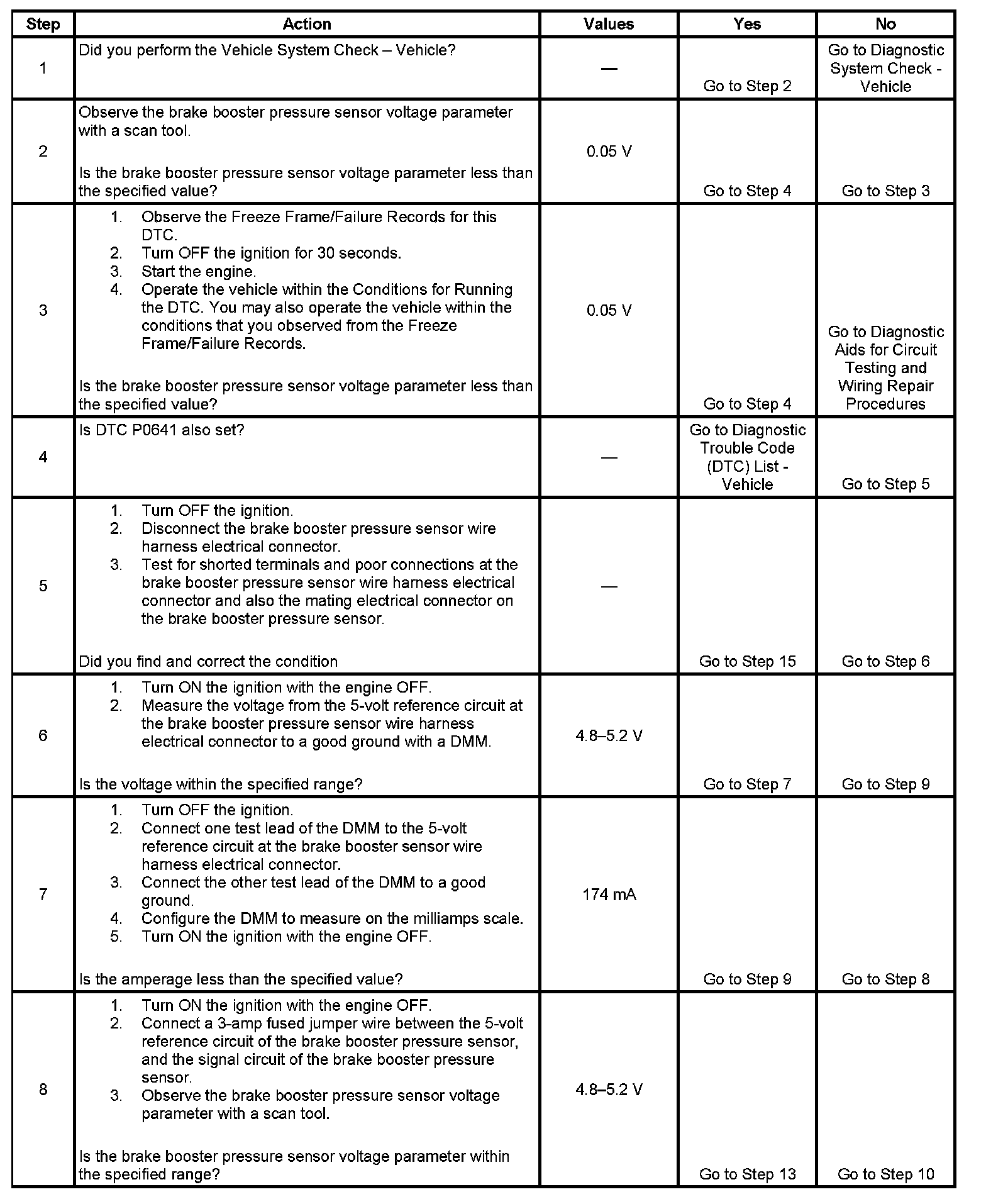 The ECM detects less than 0.04 volts on the brake booster sensor signal circuit for more than 12.5 milliseconds.