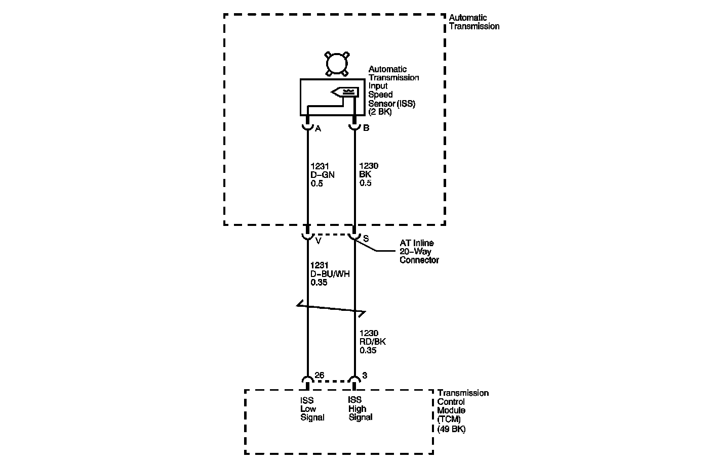 There is a fixed air gap between the sensor and the teeth on the sensor reluctor wheel. The ISS input is used by the transmission control module (TCM) in order to control line pressure, torque converter clutch (TCC) apply and release and transmission shift patterns. This sensor is also used to calculate the appropriate gear ratios and TCC slippage.