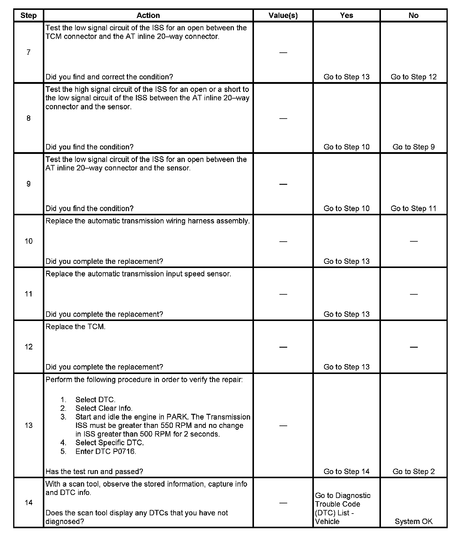 If the TCM detects an unrealistically large change in the ISS high signal in a short period of time, then DTC P0716 sets. DTC P0716 is a type B DTC.
