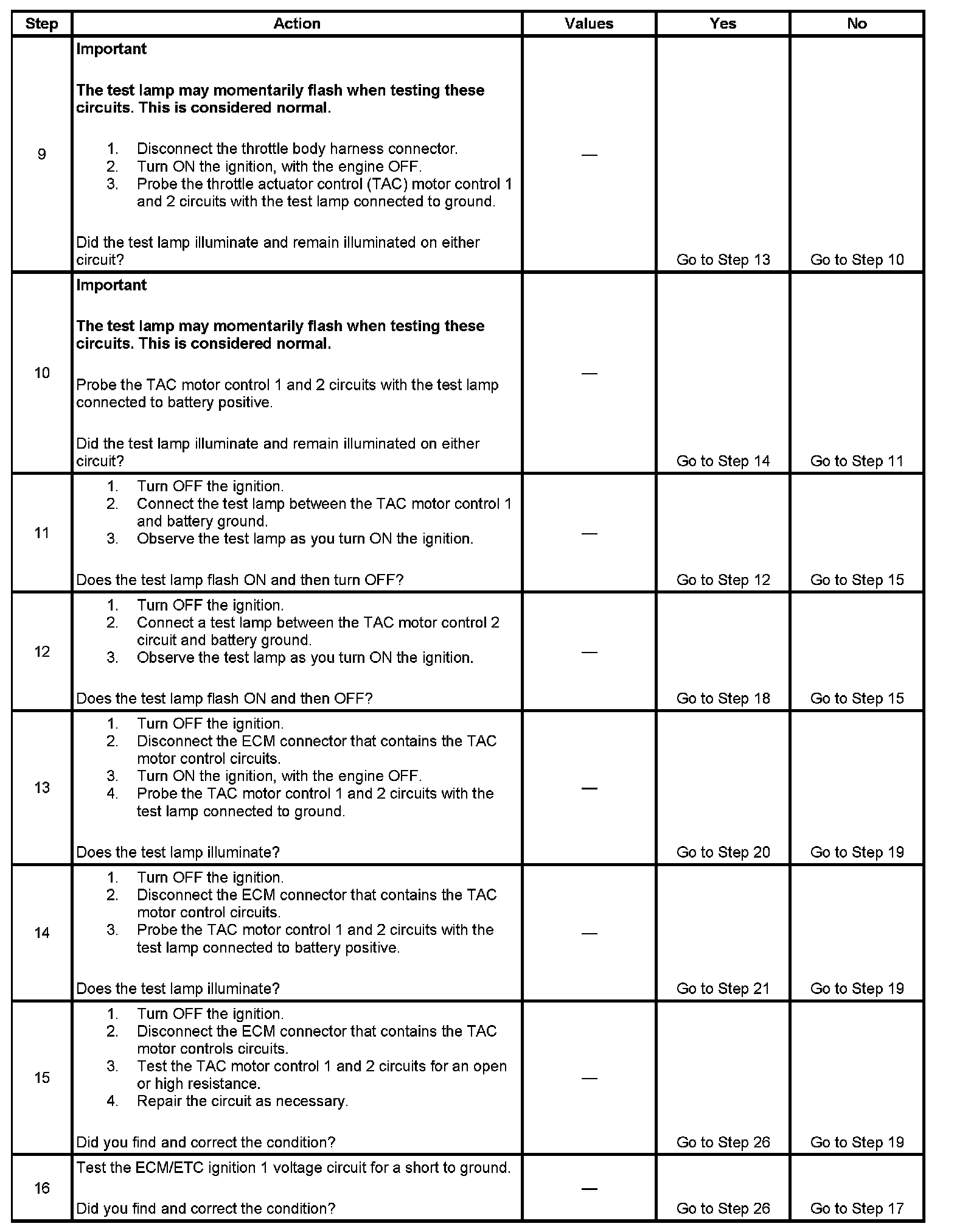 11. When the ignition is turned ON, the ECM operates the throttle control motor to verify the integrity of the system prior to start-up. This can be seen by the momentary flash of the test lamp as the ignition is turned ON.