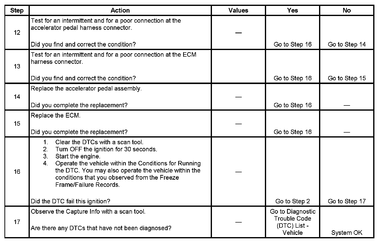 - A current DTC, Last Test Failed, clears when the diagnostic runs and passes.