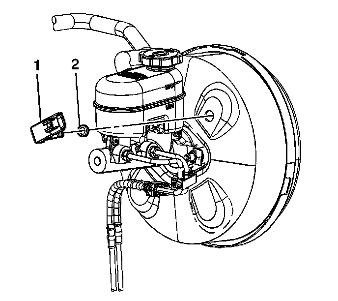 3. Remove the brake booster vacuum sensor grommet (2) from the booster.