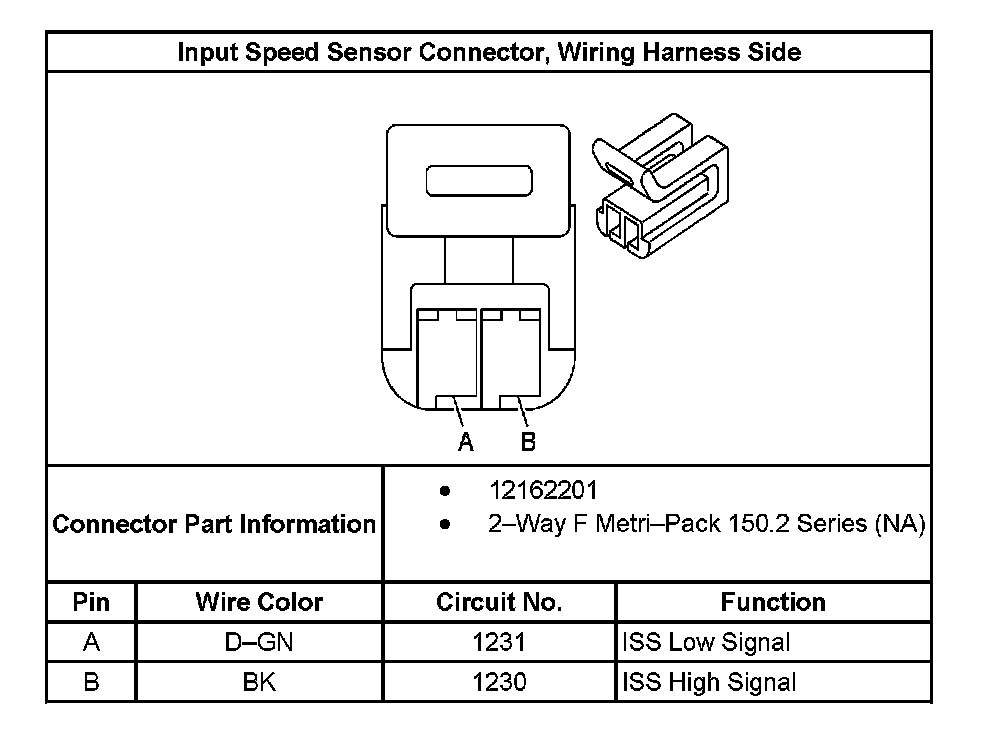 Input Speed Sensor Connector, Wiring Harness Side: