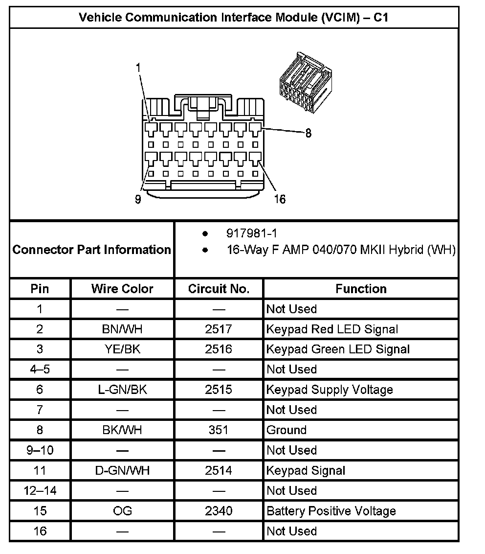 Vehicle Communication Interface Module (VCIM) - C3 (With RPO Code US4):