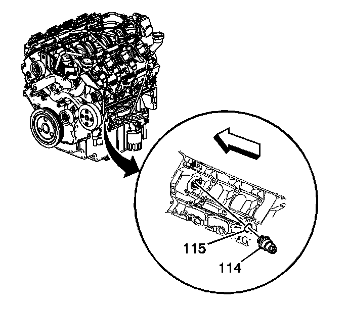 4. Remove the coolant heater (114) and washer (115).