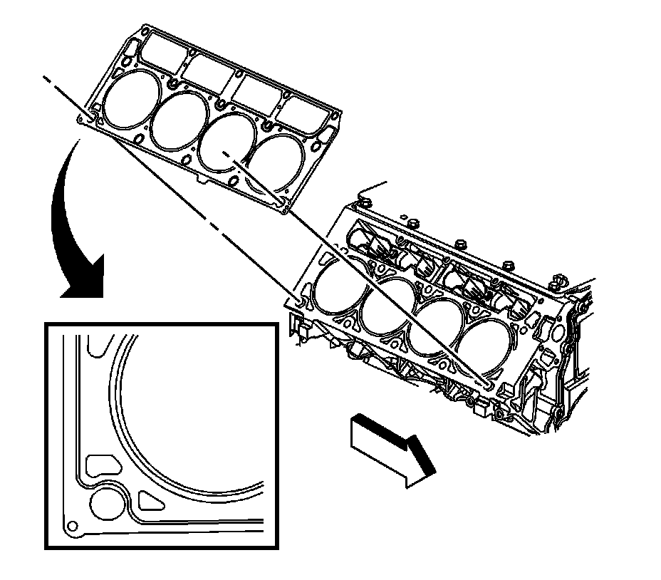 ^ The cylinder head gaskets must be installed in the proper direction and position.