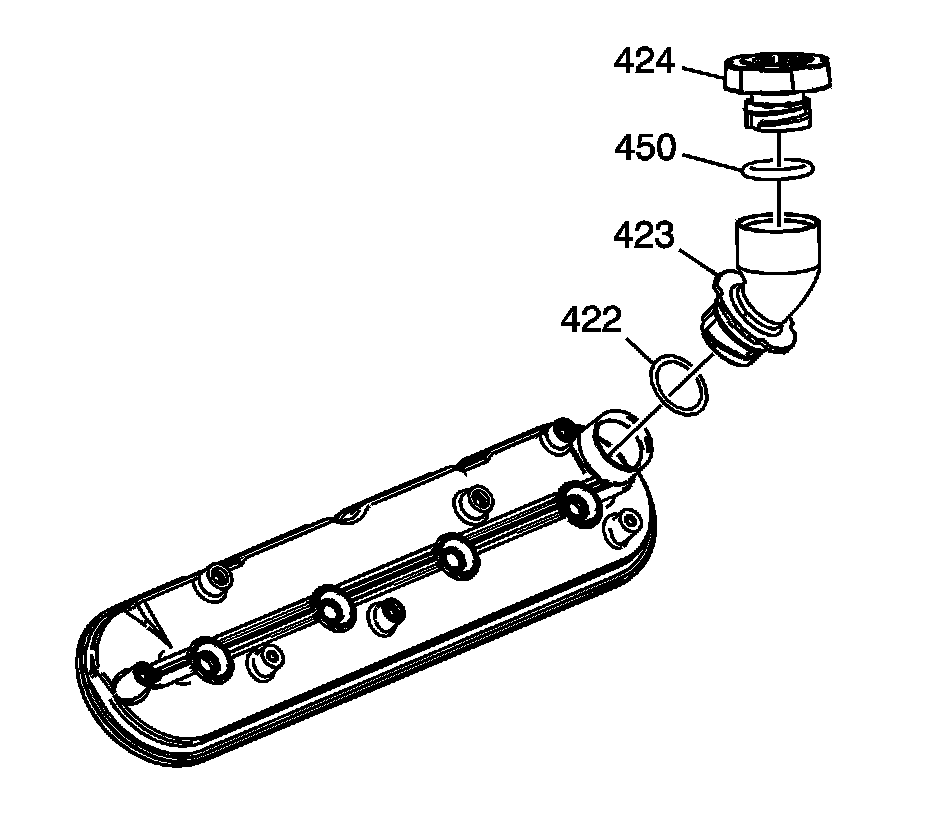 3. Install the oil fill cap (424) and O-ring (450).