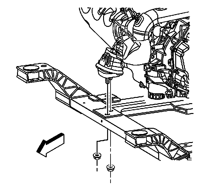 84. With the aid of an assistant, lower the J 39580 and/or raise the vehicle to remove the engine and the frame from the vehicle.
