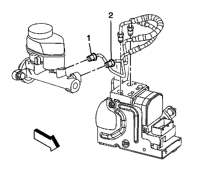 23. Disconnect the brake pipe fittings (1, 2) from the antilock brake (ABS) module.