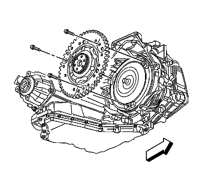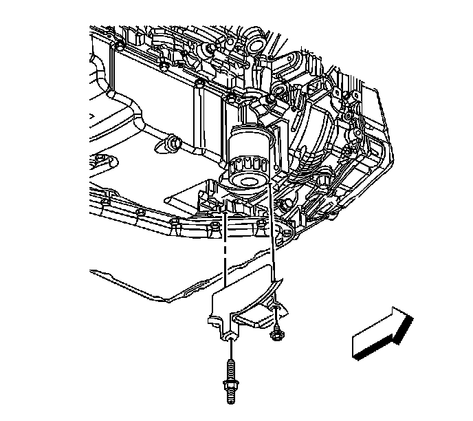 44. Remove the vehicle speed sensor (VSS) shield nut (1) and bolt (3). Remove the shield (2).