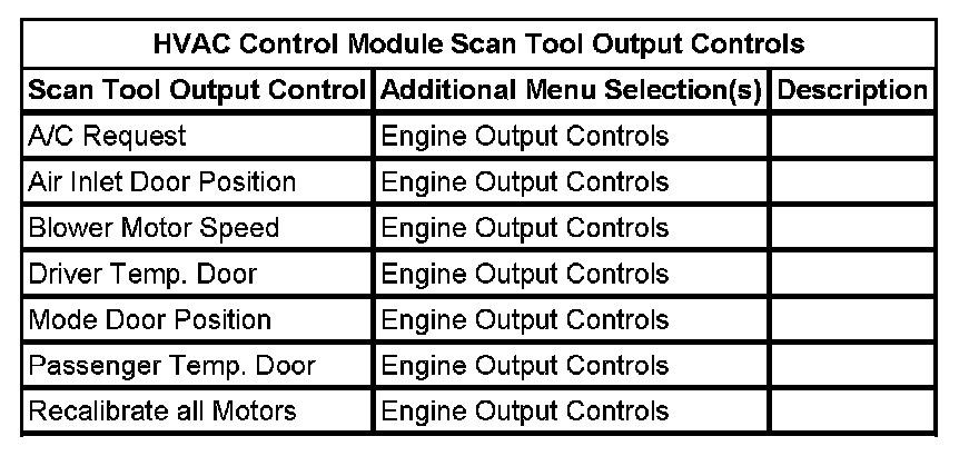 HVAC Control Module Scan Tool Output Controls: