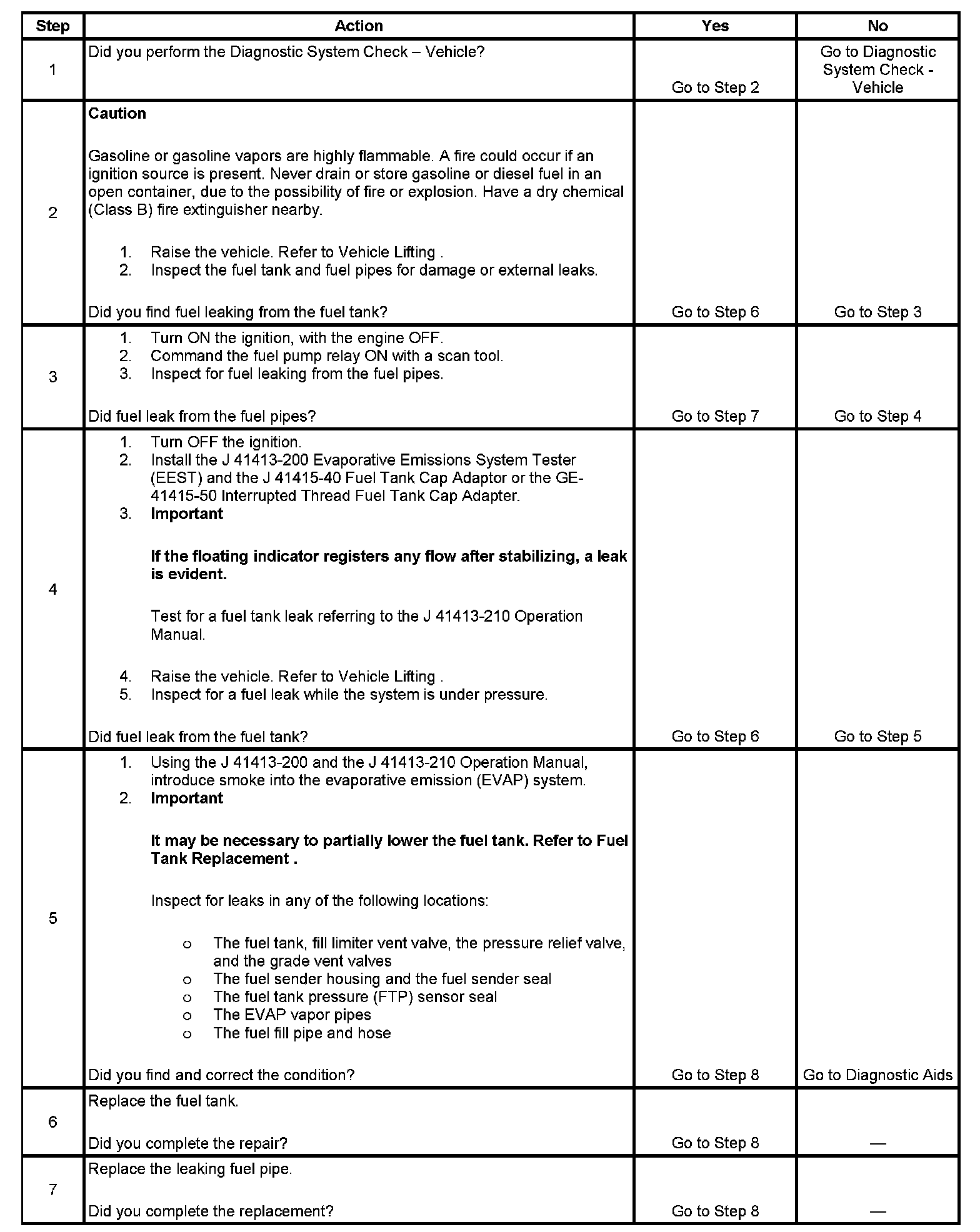 4. This step tests for fuel leaks below the fuel tank fuel level.