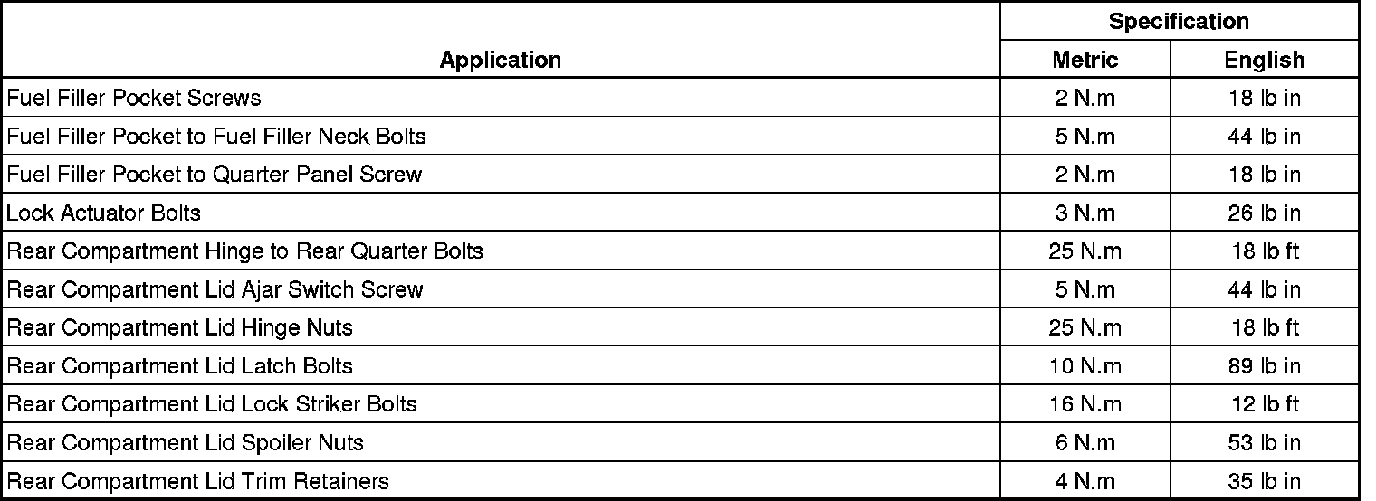 Fastener Tightening Specifications
