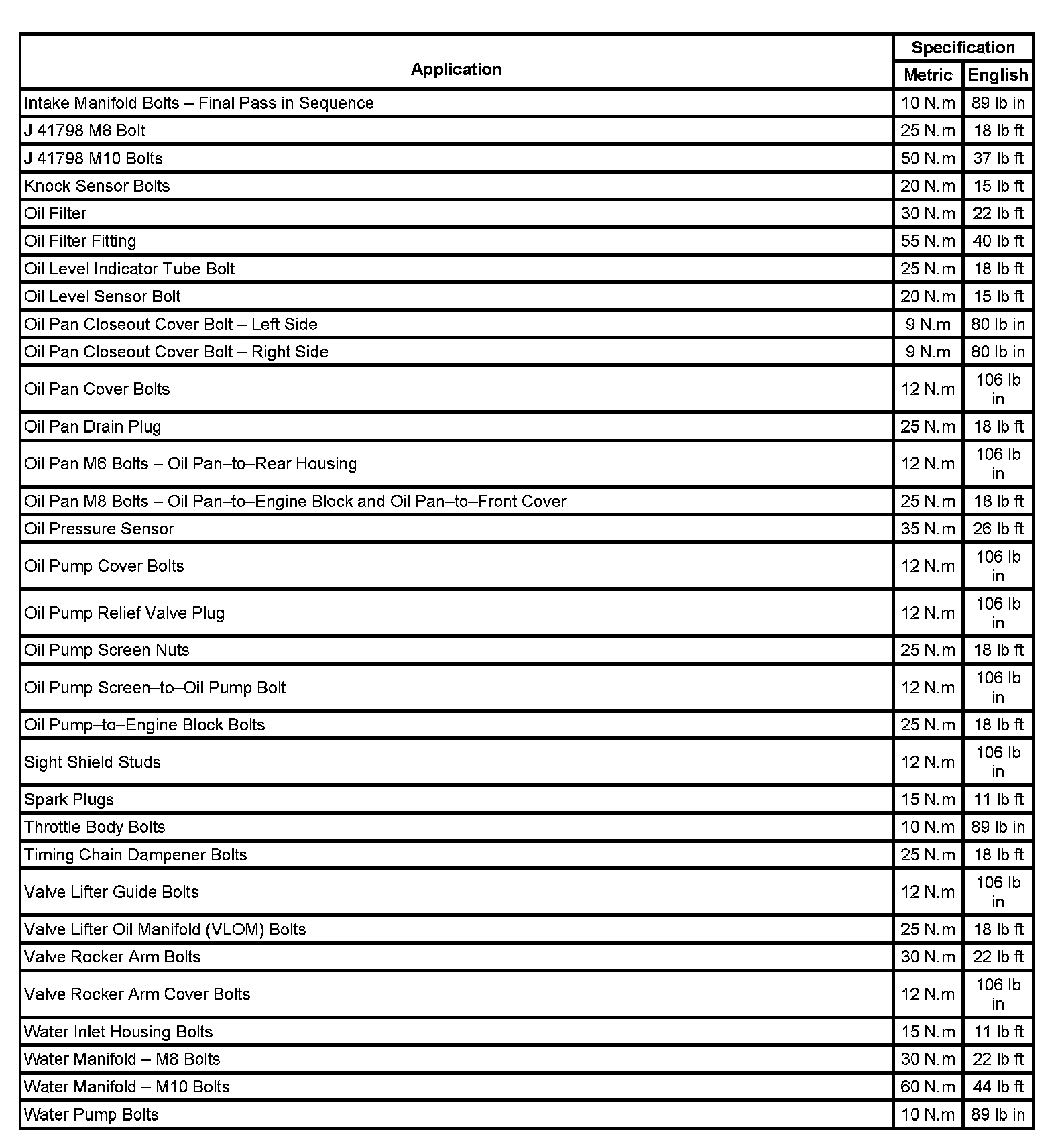 Fastener Tightening Specifications: