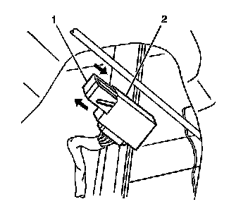 5. Connect the electrical connector (2) to the power window motor by pushing in on the tab (1).
