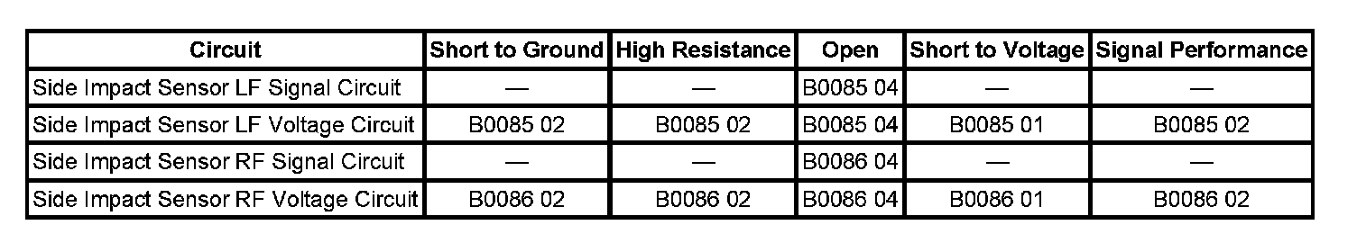 Left Front Side Impact Sensor Open Circuit