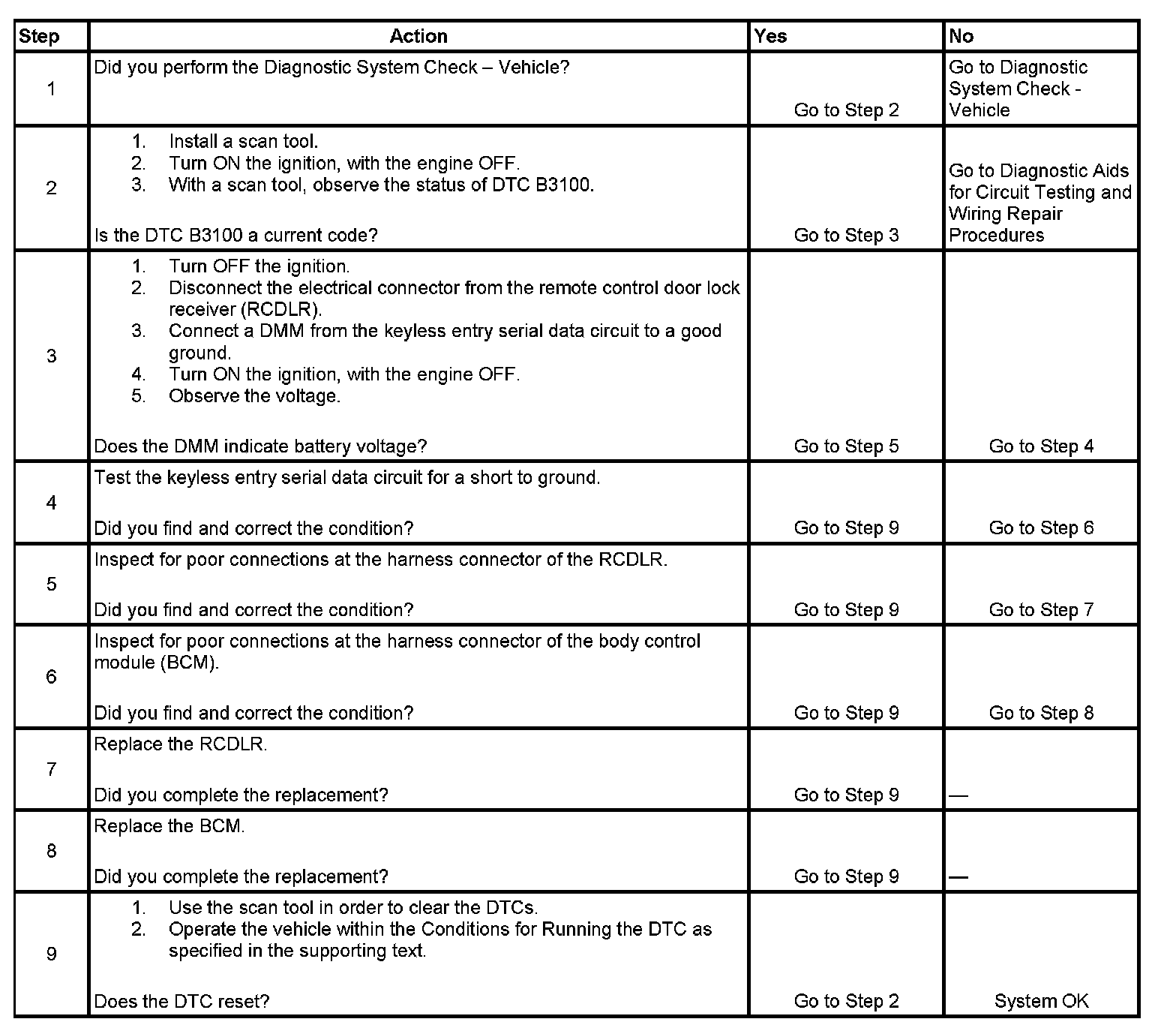 3. This step checks the keyless entry serial data circuit for voltage supplied by the BCM.