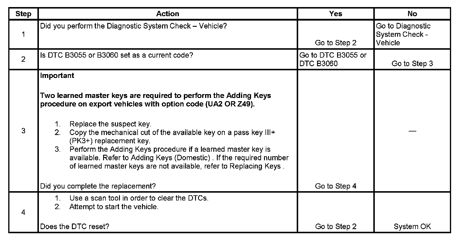 The theft deterrent control module has determined that the passkey III+ (PK3+) key has not been configured as a master key or a valet key.