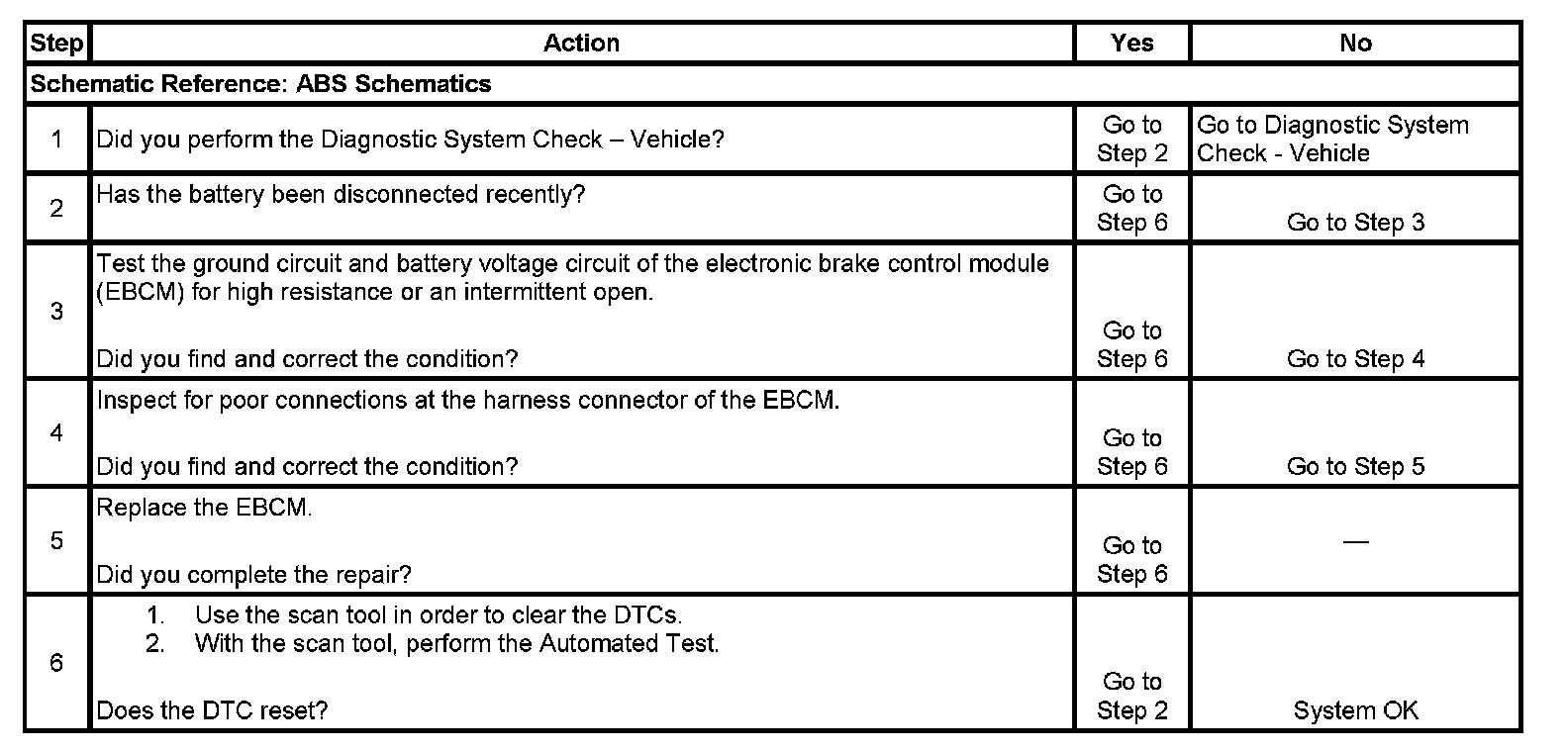 ^ The EBCM automatically clears the history DTC when a current DTC is not detected in 100 consecutive drive cycles.