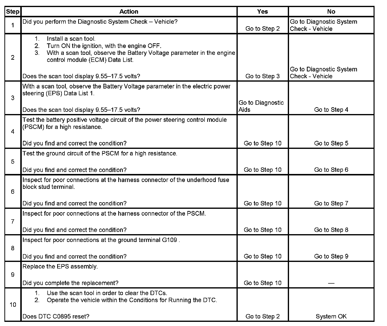 ^ A current DTC will clear when EPS system voltage is 9.55-17.5 volts.