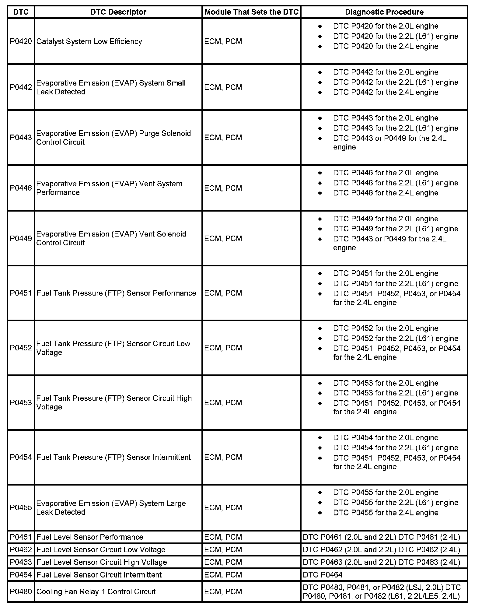 DTCs P0420 - P0480: