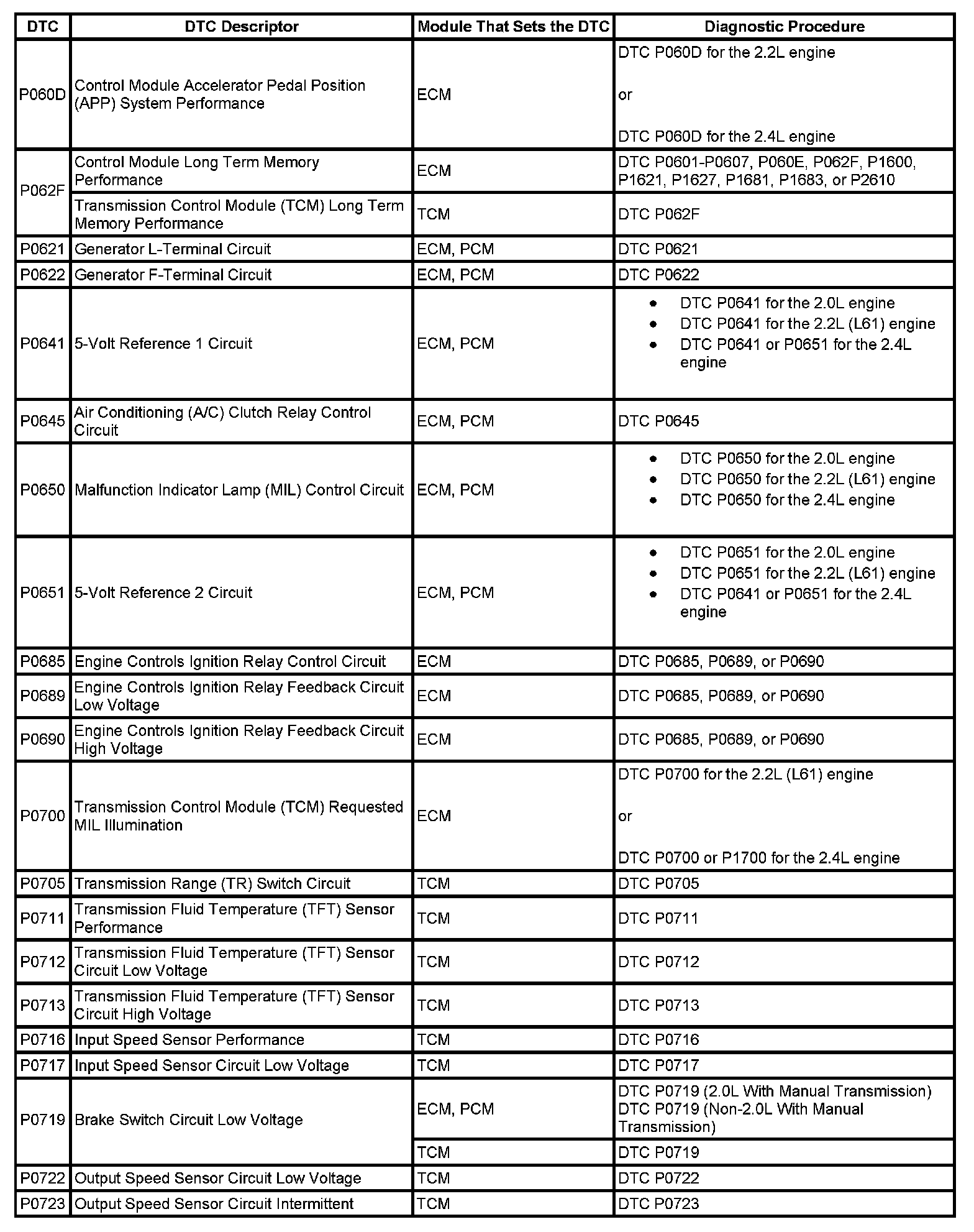 DTCs P060D - P0723:
