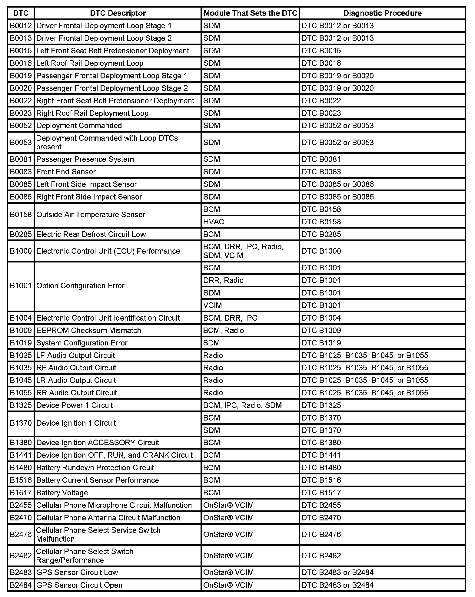 DTCs B0012 - B2484: