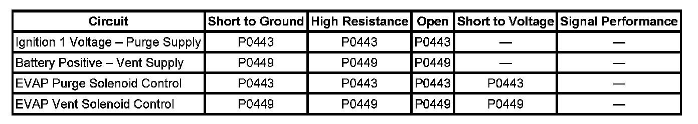 - If the test lamp does not flash or illuminate with the command, test the control circuit of the EVAP canister purge solenoid valve for an open or for a short to voltage.
