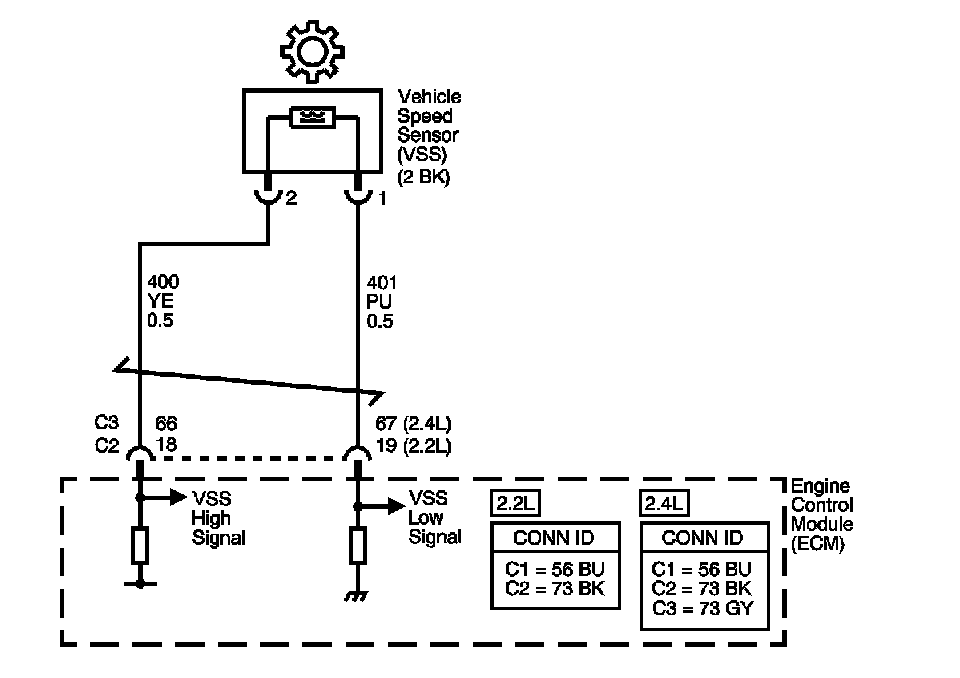 Vehicle speed information is provided to the engine control module (ECM) by the vehicle speed sensor (VSS). The VSS is a permanent magnet generator that is mounted on the transaxle and produces a pulsing voltage when vehicle speed is over 5 km/h (3 mph). The AC voltage amplitude and frequency increases with vehicle speed. The ECM converts the pulsing voltage into km/h (mph). The ECM supplies the necessary signal to the instrument panel for speedometer, odometer operation and to the cruise control module.