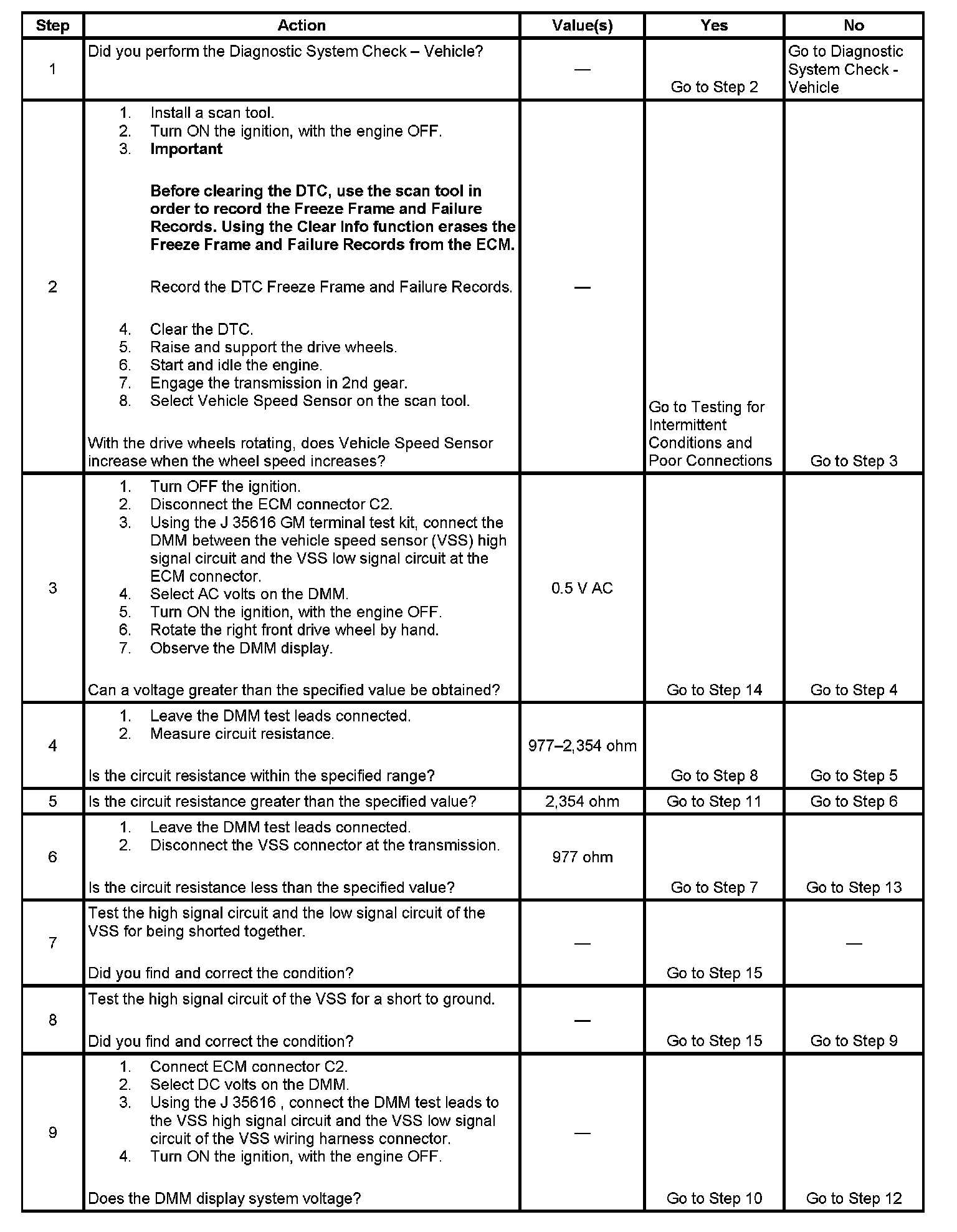 3. This step tests the ability of the VSS to produce an AC voltage. This step also verifies the integrity of the wiring to the ECM.