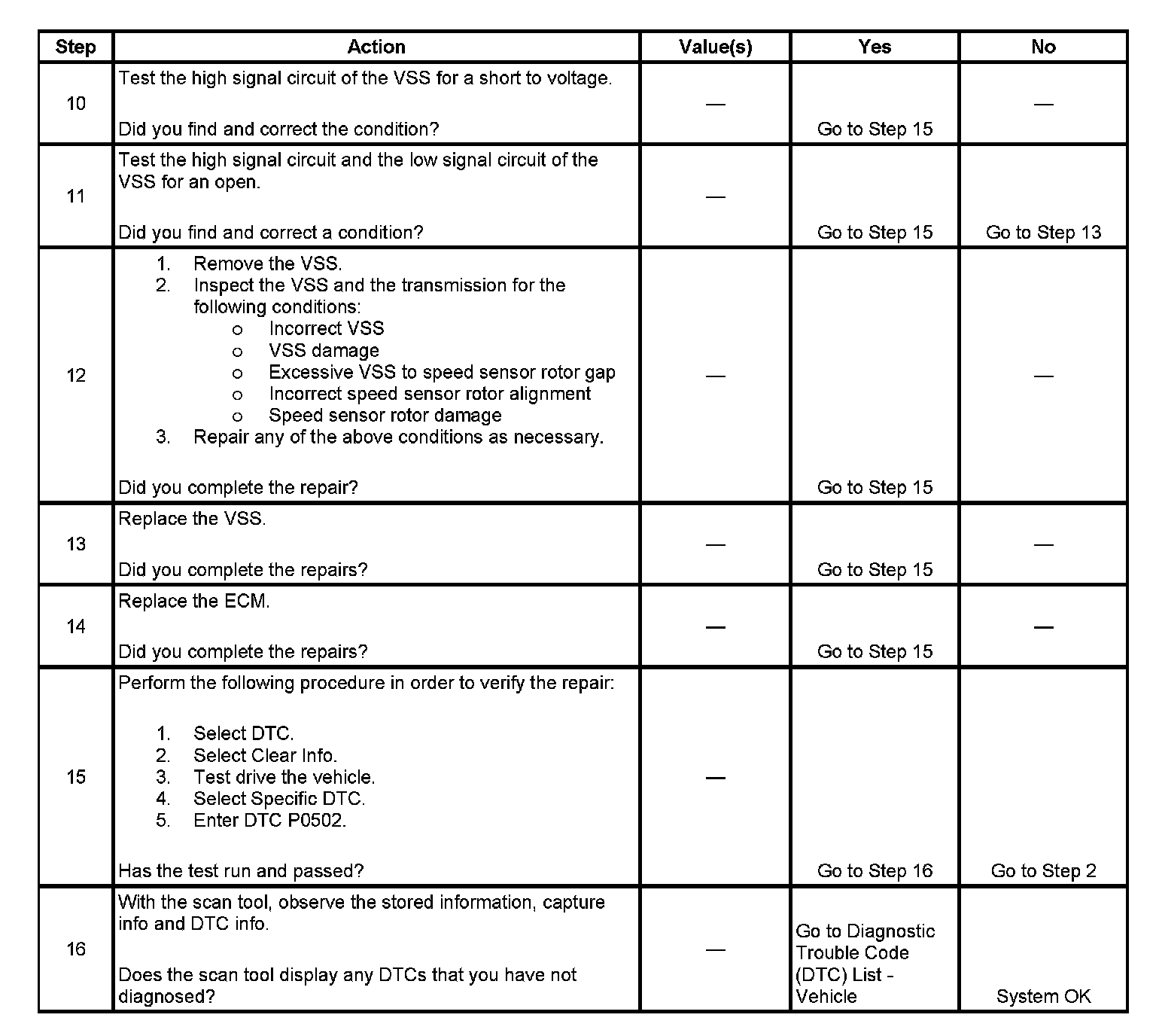 DTC P0502 Vehicle Speed Sensor (VSS) Circuit Low Voltage