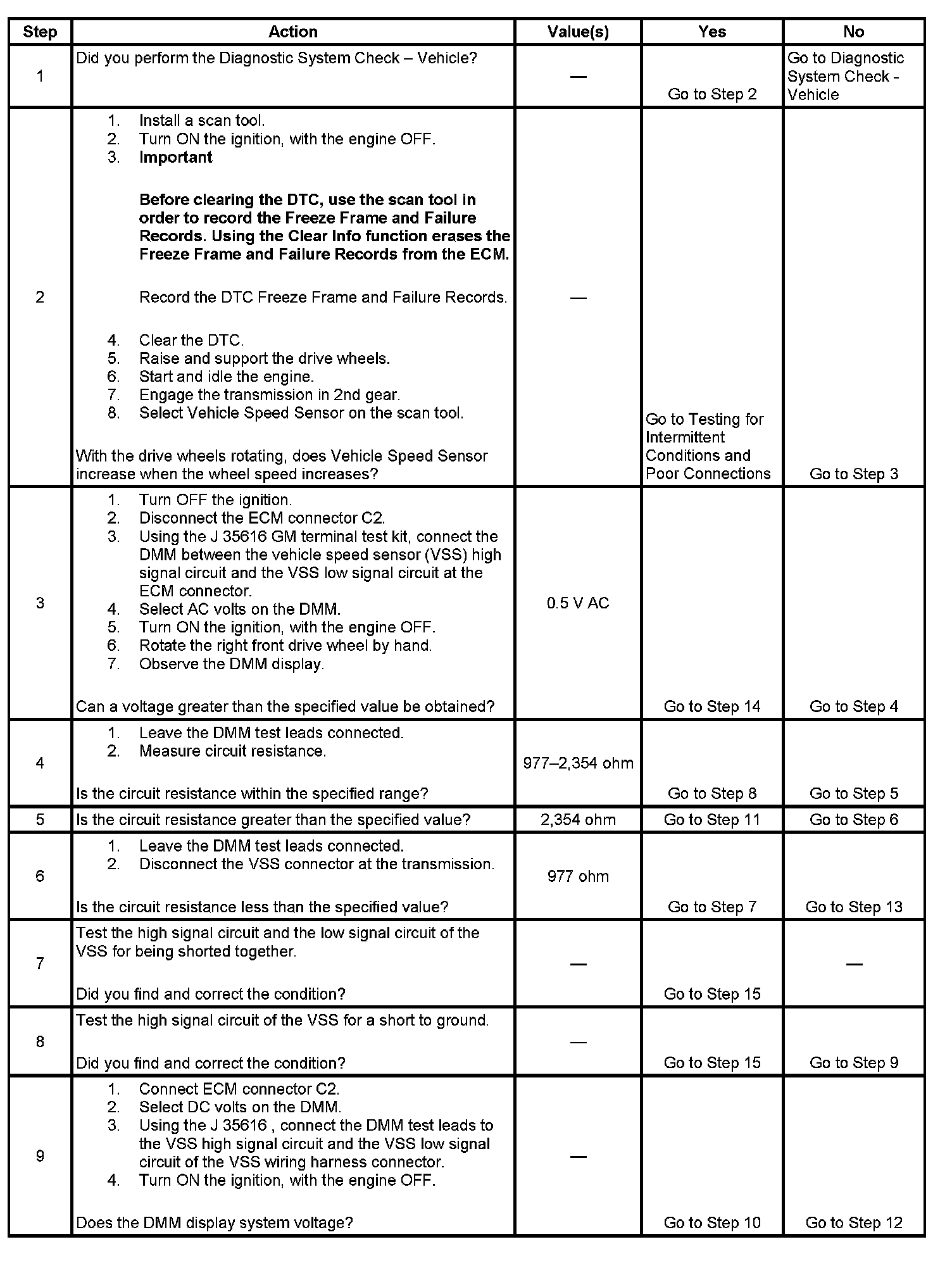 3. This step tests the ability of the VSS to produce an AC voltage. This step also verifies the integrity of the wiring to the ECM.