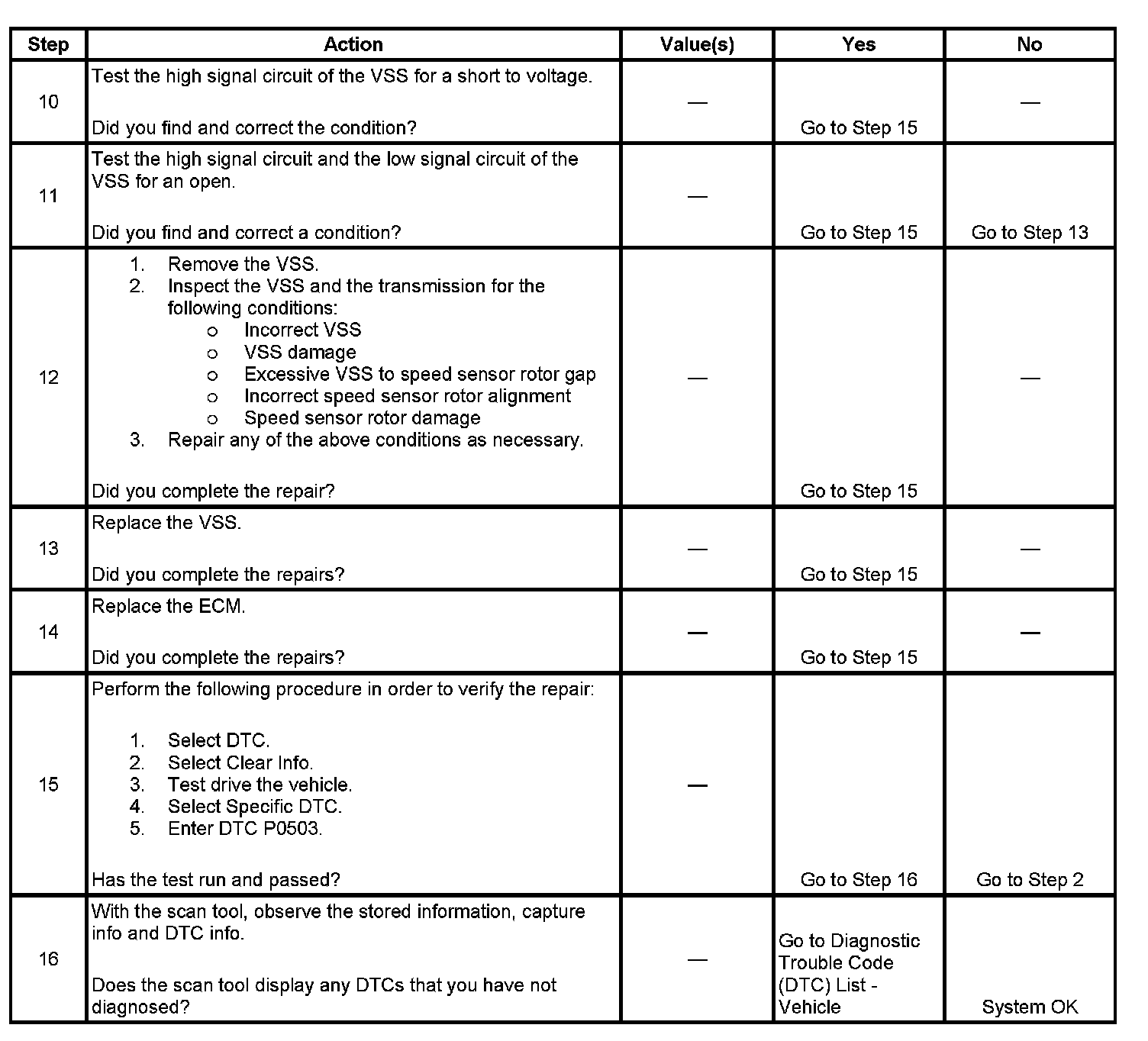 ^ The ECM stores P0503 in ECM history during the second consecutive trip in which the Conditions for Setting the DTC are met.