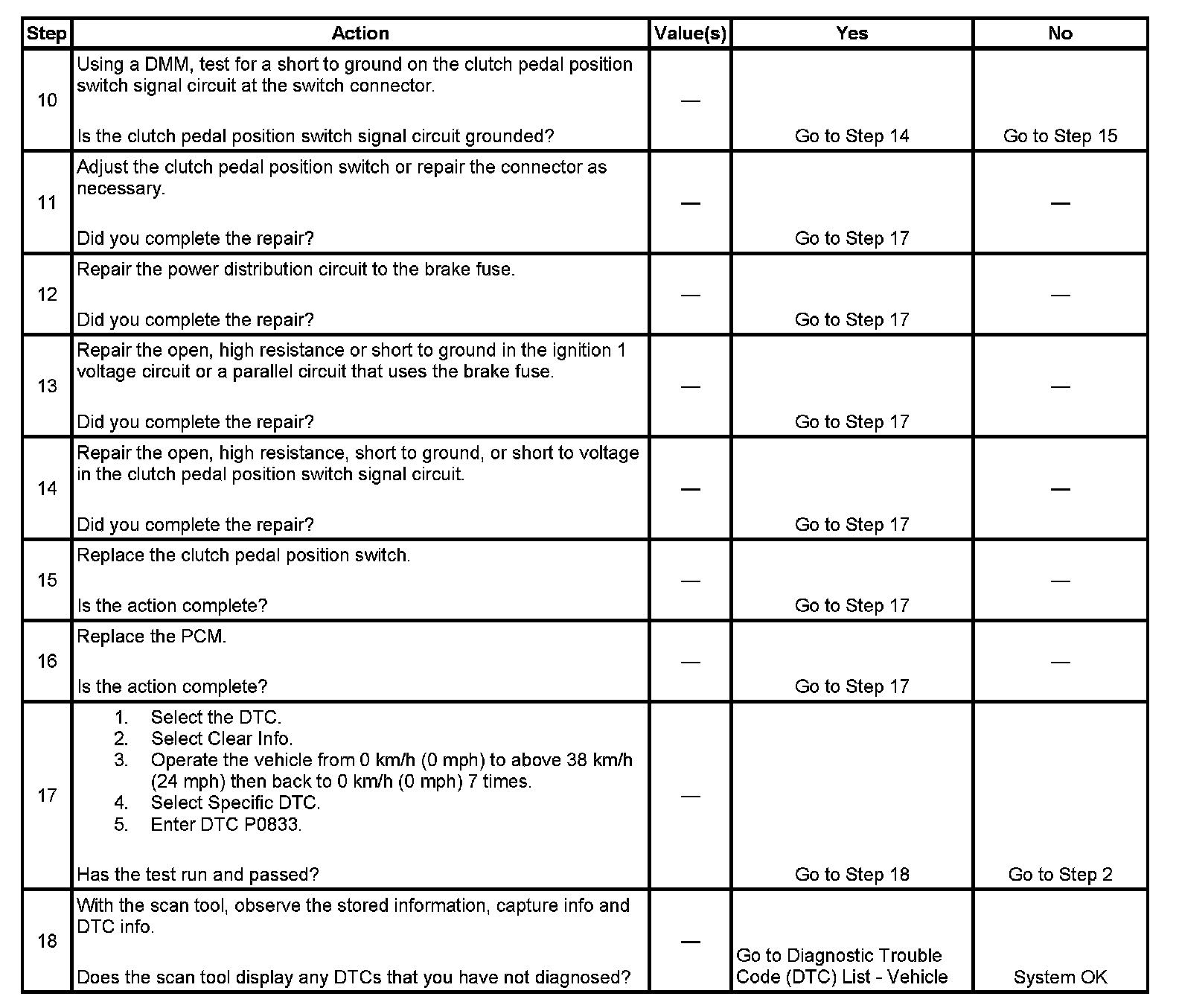 When the powertrain control module (PCM) detects a large number of gear changes without detecting a clutch switch transition, DTC P0833 sets. DTC P0833 is a type C DTC.