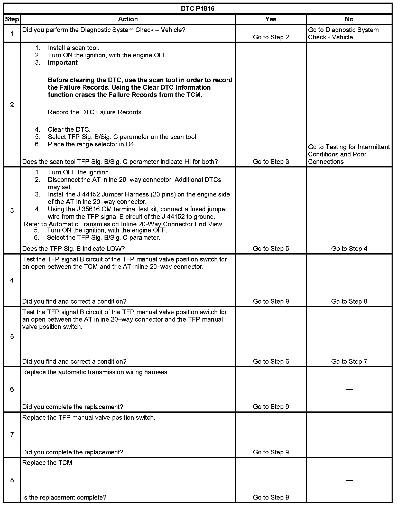 ^ The TCM stores DTC P1816 in TCM history during the second consecutive trip in which the Conditions for Setting the DTC are met.