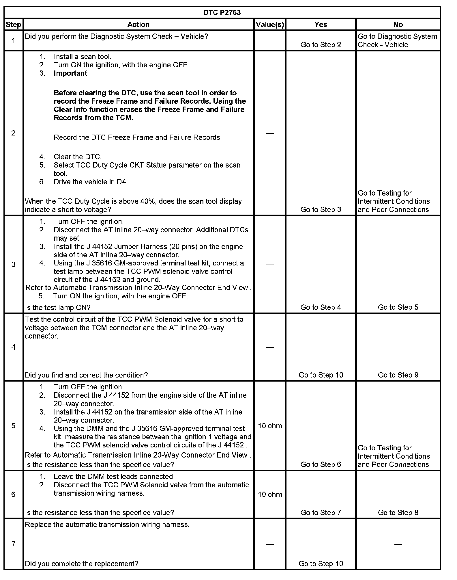 DTC P2763 Torque Converter Clutch (TCC) Pressure Control (PC) Solenoid Control Circuit High Voltage