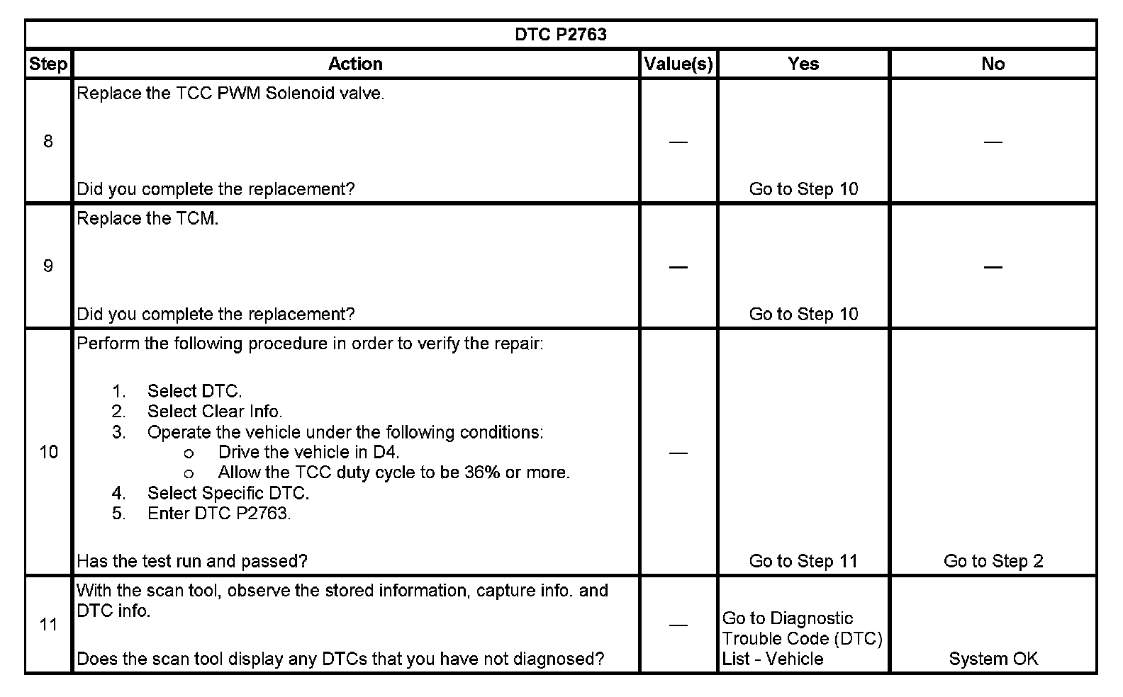 ^ The TCM stores DTC P2763 in TCM history.