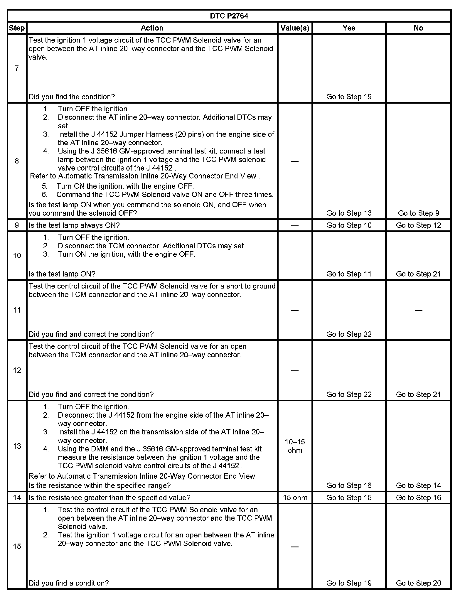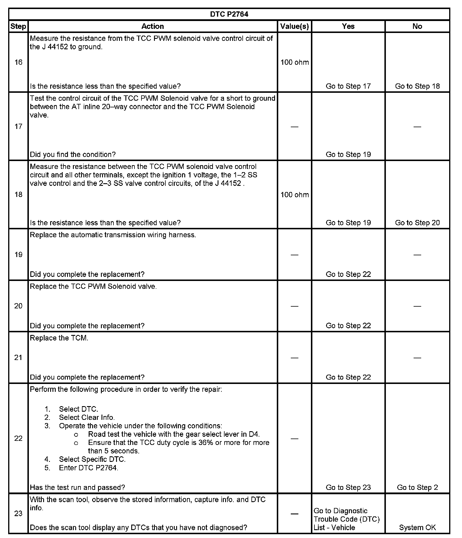 DTC P2764 Torque Converter Clutch (TCC) Pressure Control (PC) Solenoid Control Circuit Low Voltage
