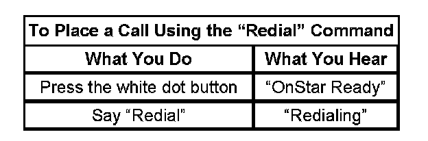 The VCIM interprets all of the voice-activated commands. A complete list of these commands is supplied in the information provided to the customer. If the information is not available to reference, at any command prompt the caller can say "HELP" and the VCIM will return an audible list of available commands. If the customer concern is not being understood or not being heard by the OnStar(R) system, the user should place a call to the OnStar(R) call center to verify proper operation of the microphone. Following this description is an example of the commands and the OnStar(R) system responses. A complete list of commands is supplied in the information provided to the customer with the OnStar(R) system.
