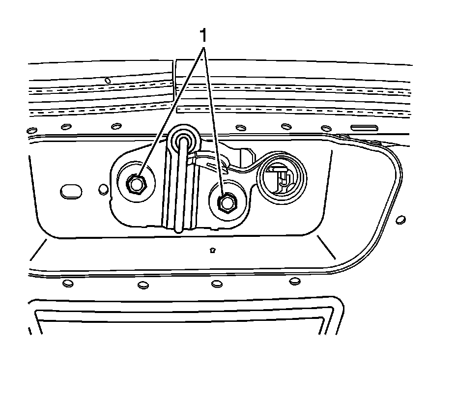 2. Remove the lock striker bolts (1).