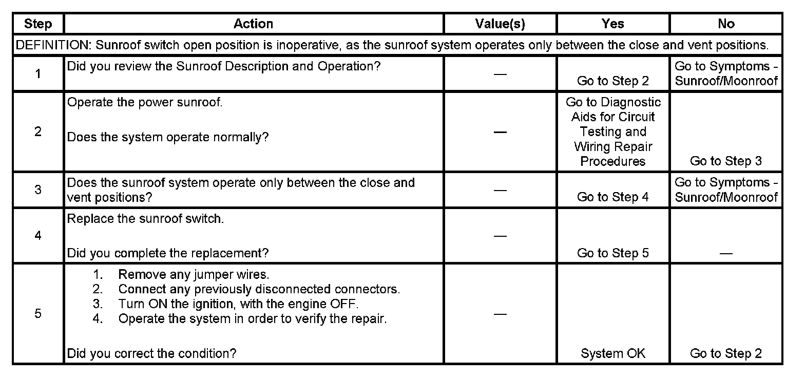 2. Any Intermittent operation for this symptom would indicate an intermittent sunroof switch, not a poor connection of the sunroof switch harness connector.