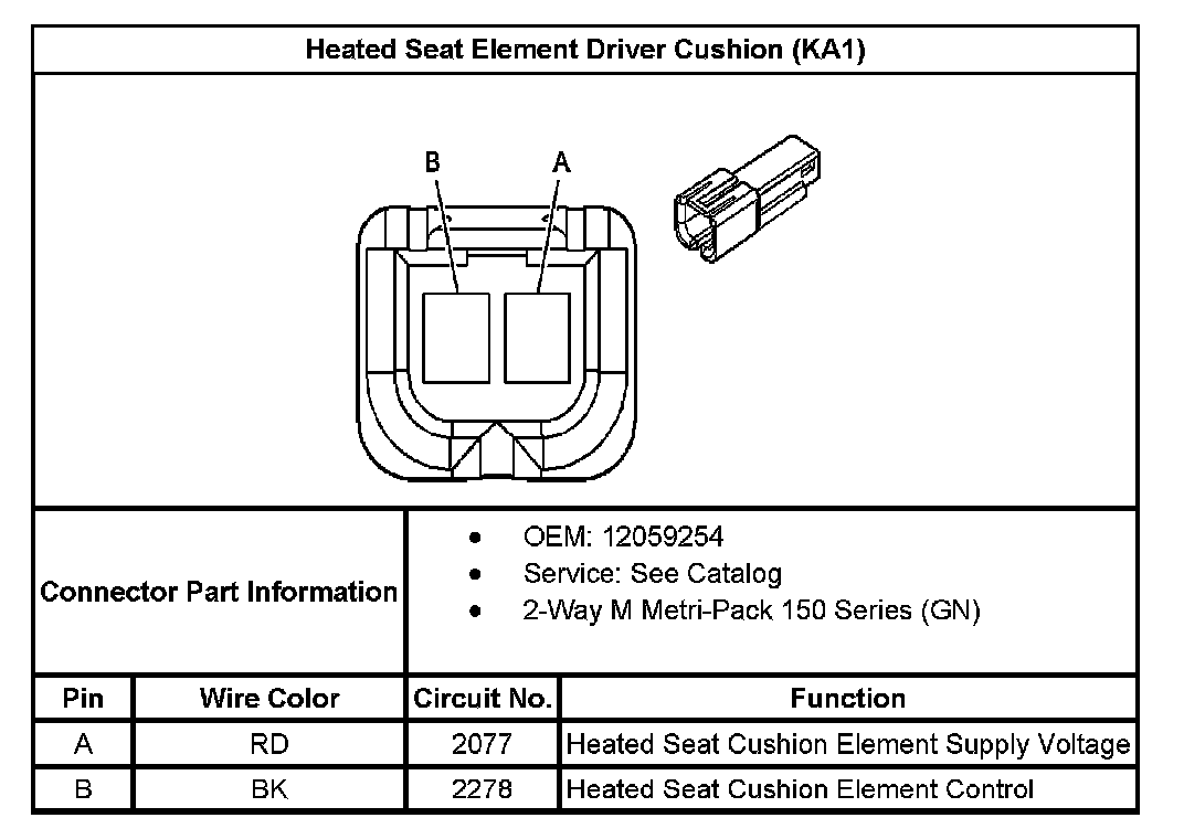 Heated Seat Element Driver Cushion (With RPO Code KA1):