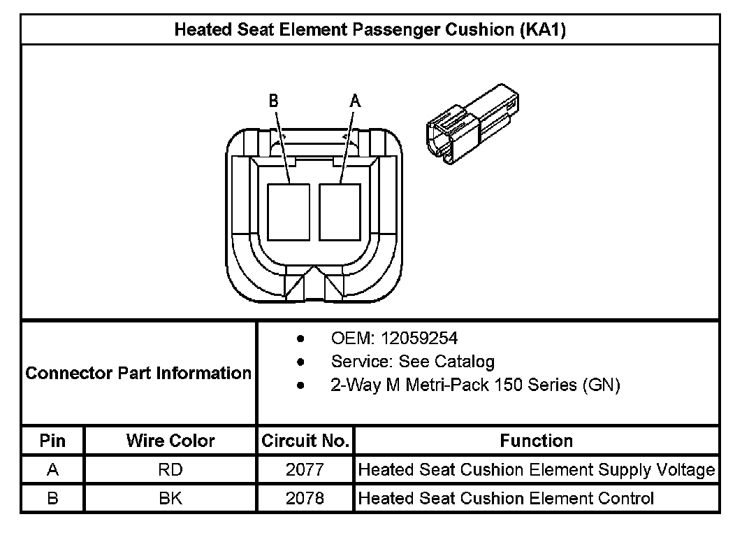 Heated Seat Element Passenger Cushion (With RPO Code KA1):