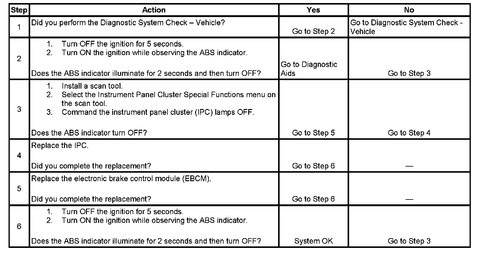 3. This step tests if the instrument panel cluster (IPC) is able to turn OFF the ABS indicator.