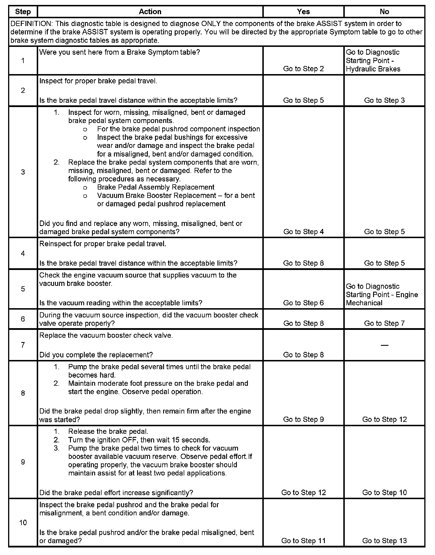Brake Assist System Diagnosis