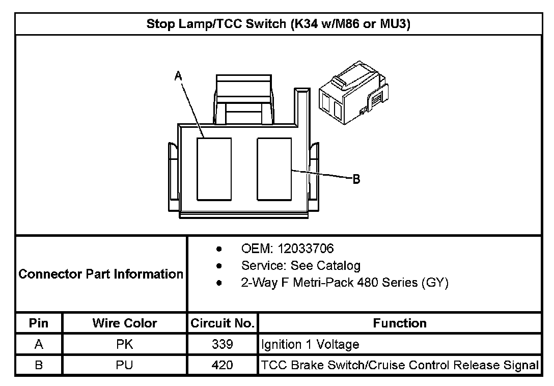 Stop Lamp/TCC Switch (With RPO Code K34, M86 Or MU3):