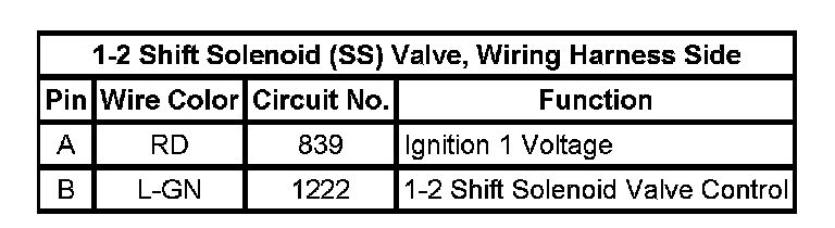 1-2 Shift Solenoid (SS) Valve, Wiring Harness Side: