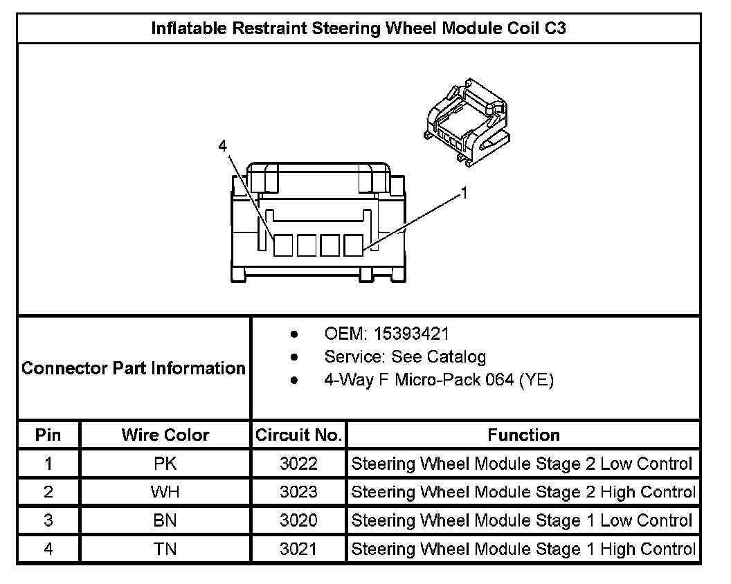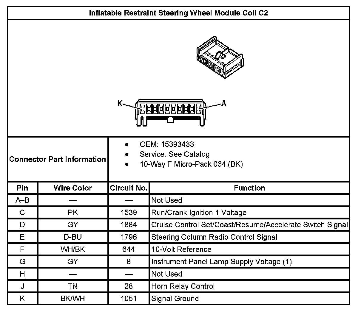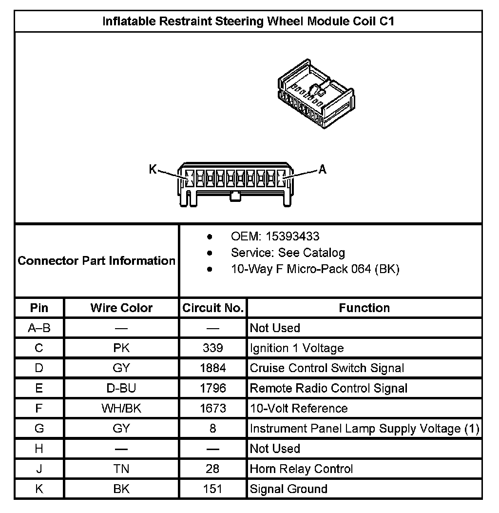 Inflatable Restraint Steering Wheel Module Coil C1:
